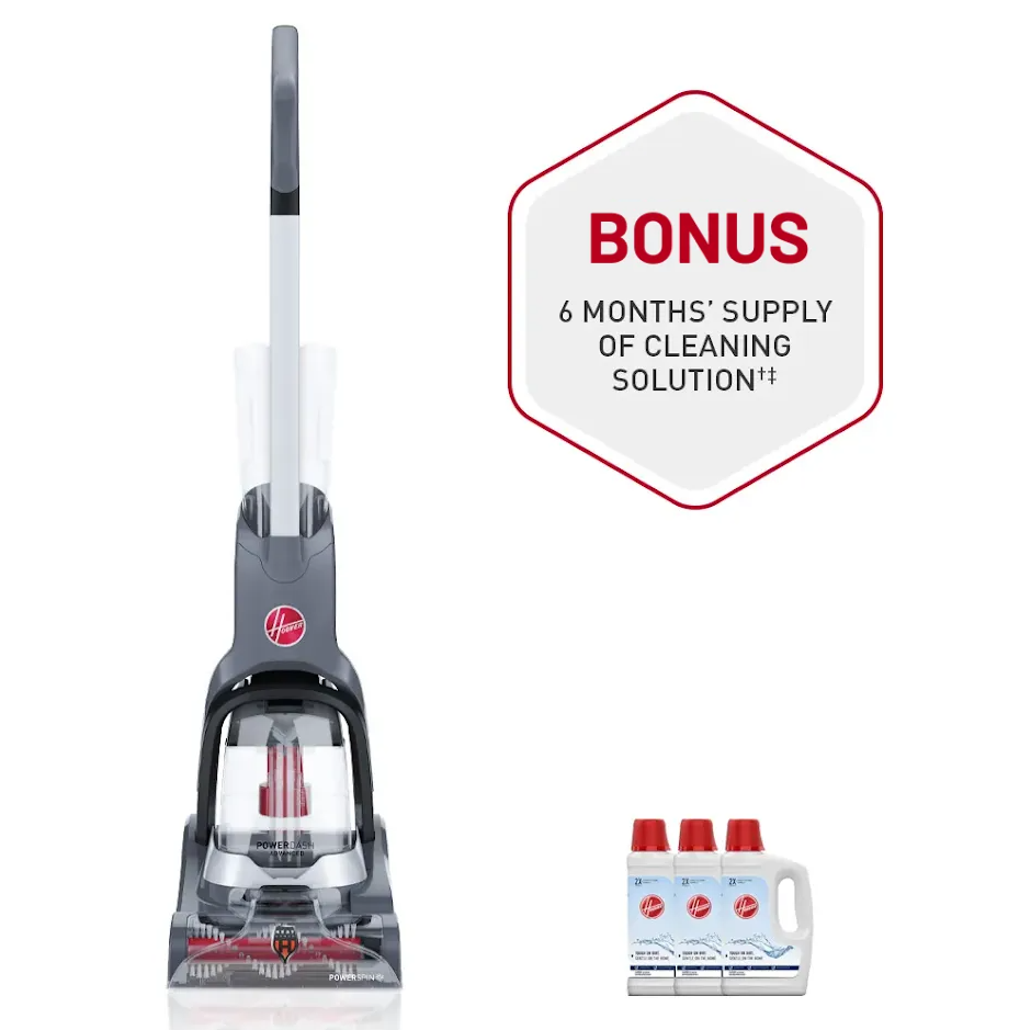 The Hoover PowerDash Carpet Cleaner easily tackle pet messes and everyday stains with the Hoover PowerDash, our most powerful compact carpet cleaner. Our new PowerSpin Pet Brush Roll provides a powerful clean for high traffic areas and small spaces. This easy-to-use pet carpet cleaner delivers a compact and lightweight design for efficient cleaning and storage. Plus, the PowerDash is designed with HeatForce power, to deliver even faster drying for any space. Ideal for your pet carpet cleaning needs!