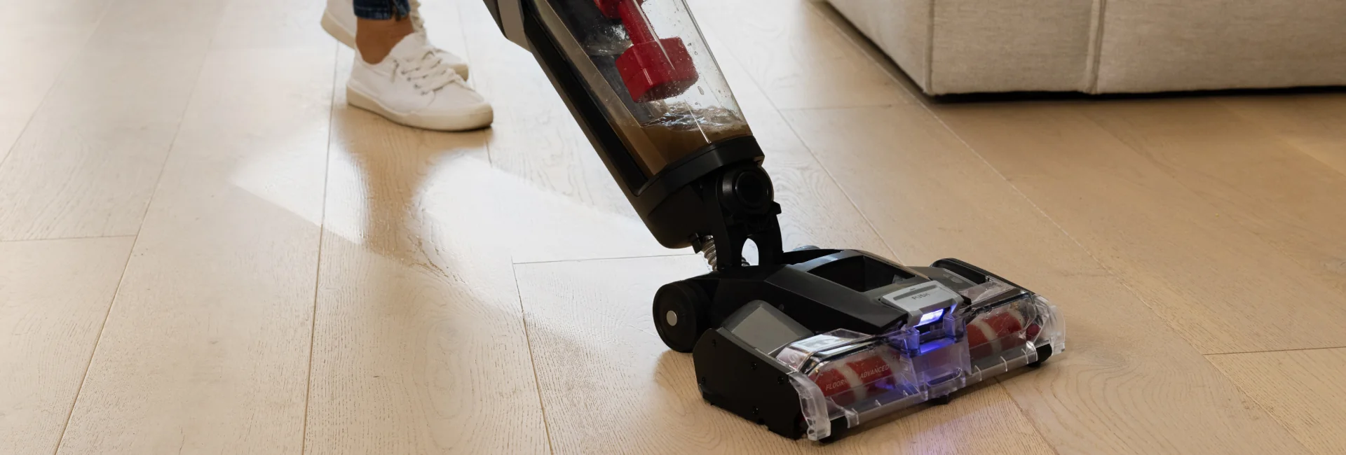 The Hoover ONEPWR FloorMate Advanced is the answer to washing your sealed hard floors, leaving them clean in one simple step. Wash, extract dirt and dry your hard floors all at the same time. With advanced dual edge brush rolls you can easily lift dried on dirt or spills the full width of the floorhead. Lightweight in hand and easy to manoeuvre, with fingertip controls, the Hoover ONEPWR FloorMate Advanced is not only easy to use but has been designed to be gentle on surfaces whilst providing optimum cleaning results on hard floors.