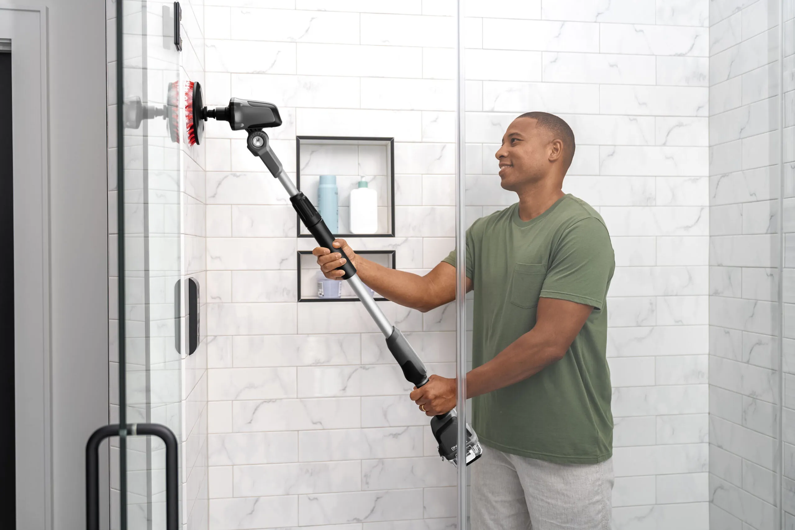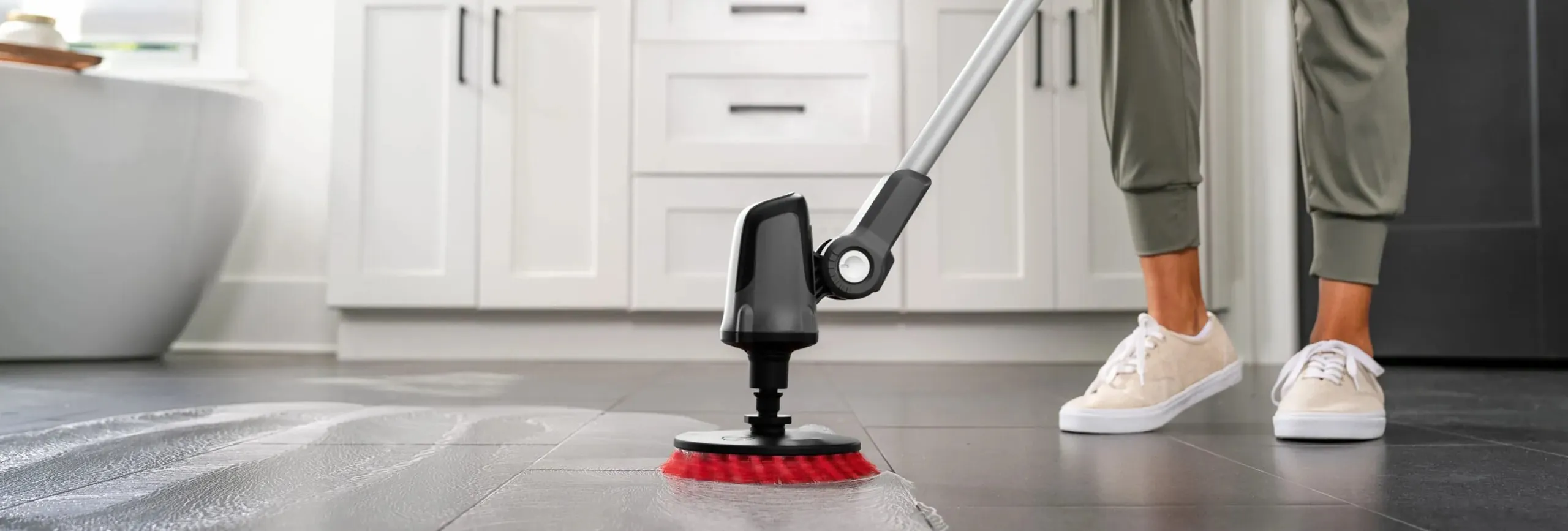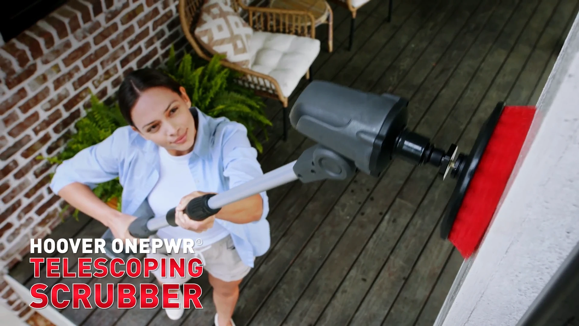 The Hoover ONEPWR Telescoping Cordless Scrubber ensures that no mess is out of reach. With over four feet of extended scrubbing reach and easy, powered scrubbing, tackling messes inside and outside the home is a breeze. The ONEPWR battery is protected in a water-resistant housing, which makes cleaning decks, siding, bathrooms, boats and more effortless. And with a pivoting brush head and interchangeable brushes, it is easy to power through any mess, no matter the angle.
